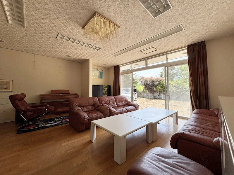 | 設備 | ビルトインガレージ、駐車3台以上可、3口以上コンロ、システムキッチン、床暖房、モニタ付インターホン、床下収納、トイレ2箇所、バス・トイレ別、温水洗浄便座、浴室に窓、浴室乾燥機、浴室暖房、南庭、プロパンガス、上水道、下水道、未舗装駐車場、屋外駐車場、L字型キッチン、キッチンに窓、雨戸、玄関収納、収納4ヶ所以上、全居室収納、倉庫、洗面化粧台、洗面所にドア、洗面所に窓、坪庭、玄関ポーチ | ||