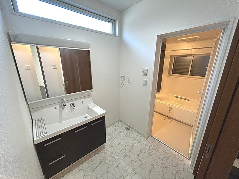 | 設備 | 駐車2台可、3口以上コンロ、オール電化、ウォークインクローゼット、収納スペース、トイレ2箇所、トイレ、バス・トイレ別、バス、浴室に窓、南面バルコニー、プロパンガス、下水道、対面式キッチン、リビング階段、クローゼット、収納4ヶ所以上、2階洗面台、洗面化粧台、洗面所にドア、洗面所に窓 | ||