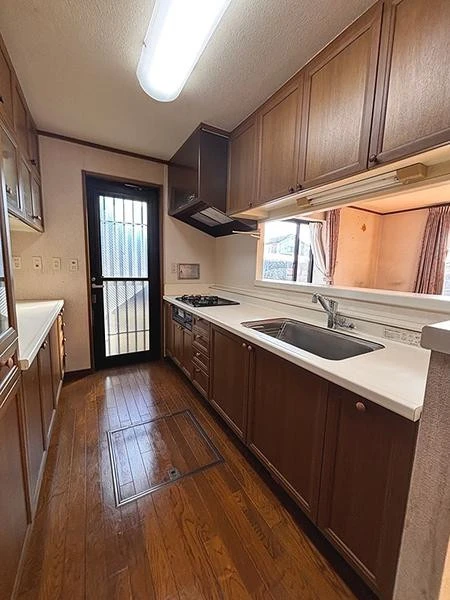 | 設備 | 3口以上コンロ、カウンターキッチン、収納スペース、トイレ、バス・トイレ別、バス、浴室に窓、南庭、プロパンガス、水道その他、屋根有駐車場、屋外駐車場、勝手口、対面式キッチン、クローゼット、シューズボックス、押入、収納4ヶ所以上、全居室収納、洗面化粧台、洗面所にドア、洗面所に窓、2WAYバルコニー、玄関ポーチ | ||