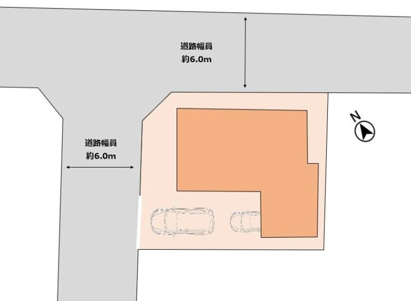 角地 北東 公道 幅6m 北西 公道 幅6m |