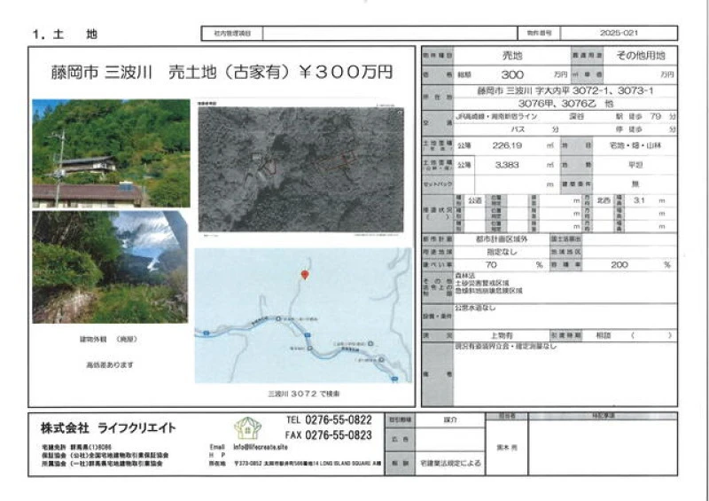※地図上の「対象地」は「群馬県藤岡市三波川 」付近を示しています。実際の場所ではない場合がございます。詳しくはお問い合わせください。