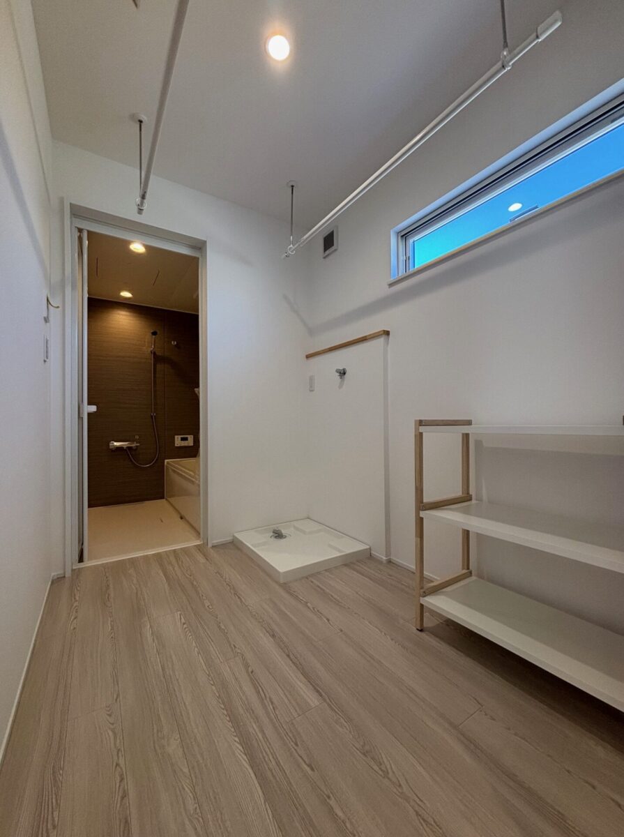 1階には天候を気にせず洗濯ができるランドリースペース 、2階には仕事や勉強に集中できるスタディスペースを完備しています 。共働き世帯の家事負担を軽減しつつ、リモートワークや子どもの学習環境もしっかり確保 。限られた空間を有効活用し、生活の質を高めるこだわりが随所に散りばめられています。